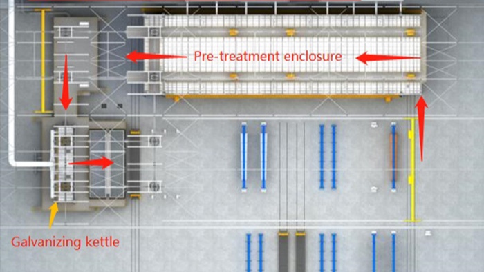 During operation, the steel material is first placed on the unwinding machine for uncoiling, and then enters the pre-treatment device for surface cleaning and rust removal. Next, the material is dried in the drying furnace, and then enters the galvanizing furnace. In the furnace, the steel material is immersed in the zinc pot and then taken out for cooling. Finally, the coated steel plate is coiled by the coiling machine. The production line has a stable and reliable operation, high degree of automation, and excellent product quality.
